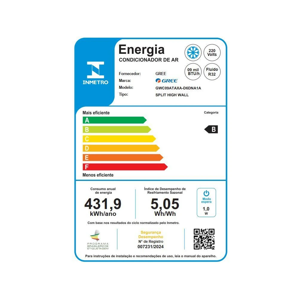 A classificação energética A é um destaque, garantindo que o aparelho opere de maneira eficiente sem desperdício de energia, o que é excelente tanto para o meio ambiente quanto para o seu bolso. O sistema de conexão Wi-Fi possibilita o controle remoto através de dispositivos móveis, permitindo ajustar a temperatura, programar horários e ativar funções mesmo quando você não está em casa, garantindo um ambiente confortável quando você chega.